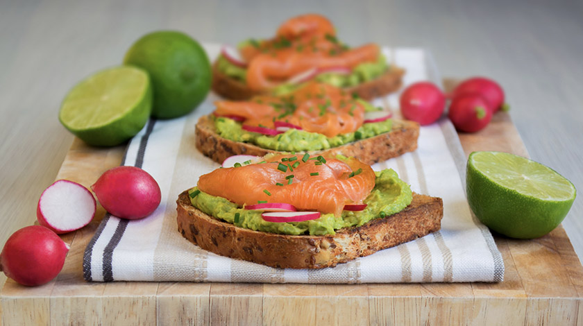- Spread avocado on toast, then top with rest of ingredients. Season with salt and pepper.